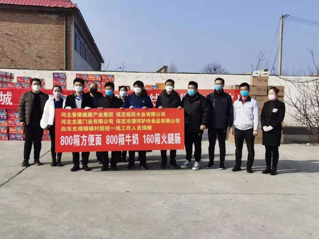 困難時刻顯擔(dān)當(dāng),關(guān)鍵時刻敢沖鋒,哪里有需要,哪里就能看見黨旗在飄揚。在這舉國戰(zhàn)“疫”的緊要關(guān)頭,普康健康產(chǎn)業(yè)集團、皓辰木業(yè)有限公司、龍巢門業(yè)、漕河驢肉食品有限公司四家愛心企業(yè),積極響應(yīng),積極奉獻愛心、踐行社會責(zé)任,踴躍捐款捐物,于2月10日向東史端鎮(zhèn)防控一線工作人員捐贈800箱方便面,800箱牛奶,160箱火腿腸。這些物資將緊急發(fā)送至東史端鎮(zhèn)的15個村的防控監(jiān)測站。